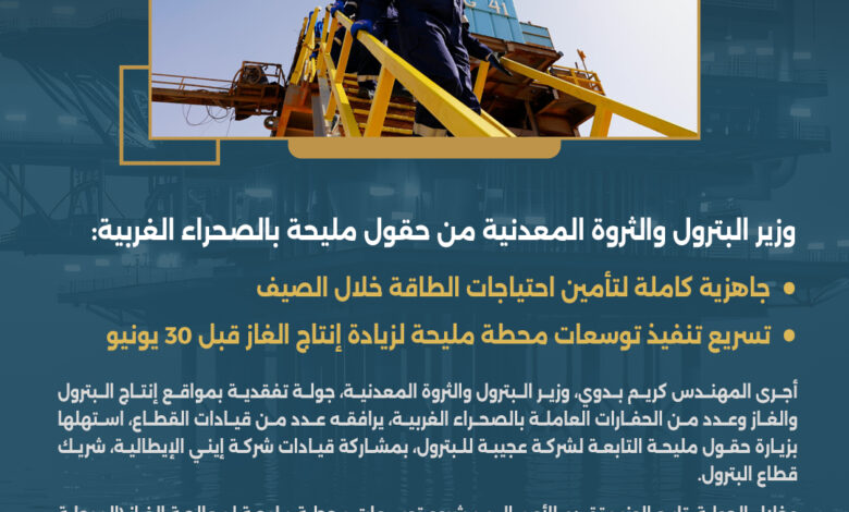 الرئيسية/أهم الاخبار/بالصور … تفاصيل جولة وزير البترول في حقول مليحة بالصحراء الغربية أهم الاخباربترول وطاقة بالصور … تفاصيل جولة وزير البترول في حقول مليحة بالصحراء الغربية آخر تحديث: 2026/04/18 6:08:59 مساءً أ حتى يوليو 2026، الوسومالصحراء الغربية توسعات انتاج الغاز لتغطية الاحتياجات المحلية حقول مليحة وزير البترول في حقول الصحراء الغربية نسخ الرابط تم نسخ الرابط آخر تحديث: 2026/04/18 6:08:59 مساءً فيسبوك X Tumblr Reddit VKontakte مشاركة عبر البريد طباعة