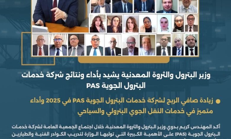 واستعرض إيهاب عبدالمقصود رئيس شركة خدمات البترول الجوية نتائج أعمالها عن عام 2025، مؤكداً استمرارها في تعزيز دورها كشركة وطنية رائدة في تقديم خدمات النقل الجوي المتخصص لدعم نشاط قطاع البترول والثروة المعدنية ، إلى جانب دورها في تقديم خدمات النقل الجوي داخلياً وخارجياً ودعم قطاعات السياحة والاستثمار .