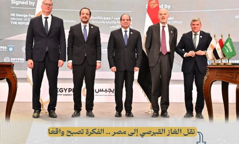 وفي إطار تعزيز مكانتها كمركز إقليمي لتداول وتجارة الطاقة وتعظيم الاستفادة من البنية التحتية القوية في قطاع الغاز والموقع الجغرافي كبوابة لأوروبا ، نجحت مصر في تحويل فكرة نقل الغاز القبرصي إلى واقع ملموس، حيث تم توقيع الاتفاق الحكومي لنقل الغاز من حقل “كرونوس” القبرصي إلى مصر في فبراير 2025 في افتتاح مؤتمر ايجبس بحضور فخامة الرئيس عبدالفتاح السيسى وفخامة رئيس قبرص نيكوس كريستودوليدس بما يعكس عمق التعاون بين البلدين في مجال الطاقة.