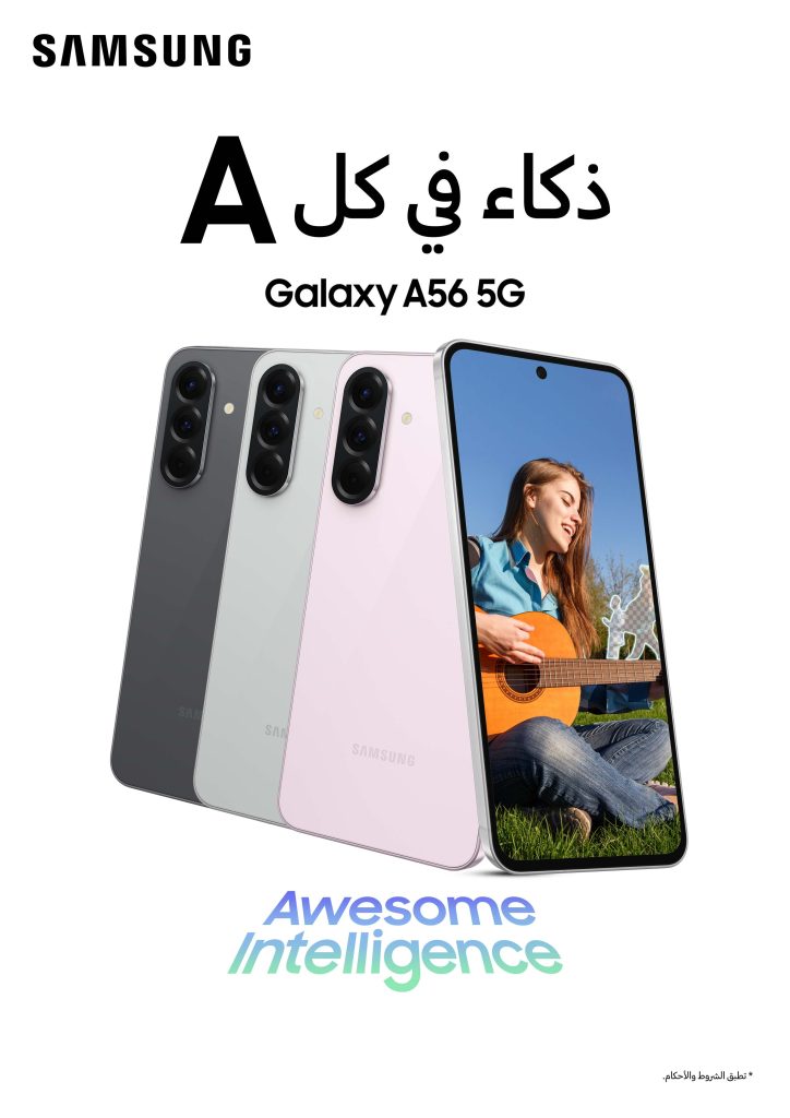 يذكر أن جهاز ‘Galaxy A56 5G’ متوفر بألوان: رمادي فاتح، جرافيتي، زيتوني، وزهري. ويأتي جهاز ‘Galaxy A36 5G’ بألوان: لافندر، أسود، أبيض، وليموني. أما ‘Galaxy A26 5G’، فيتوفّر بألوان: أسود، أبيض، وزهري خوخي.
