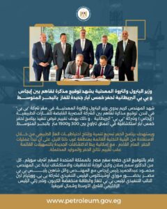استثمار جديد: مصر و”بي بي” البريطانية توقعان مذكرة لحفر 5 آبار غاز بالمتوسط