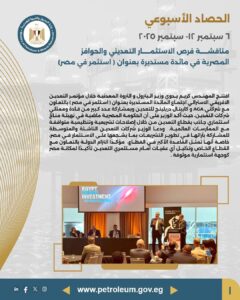 أصدرت وزارة البترول والثروة المعدنية، الحصاد الأسبوعي حول أبرز أنشطة الوزارة لتنفيذ محاور استراتيجية عملها الرئيسية ، واجتماعات ومشاركات كريم بدوي وزير البترول والثروة المعدنية في هذا الصدد عن الأسبوع المنقضي .