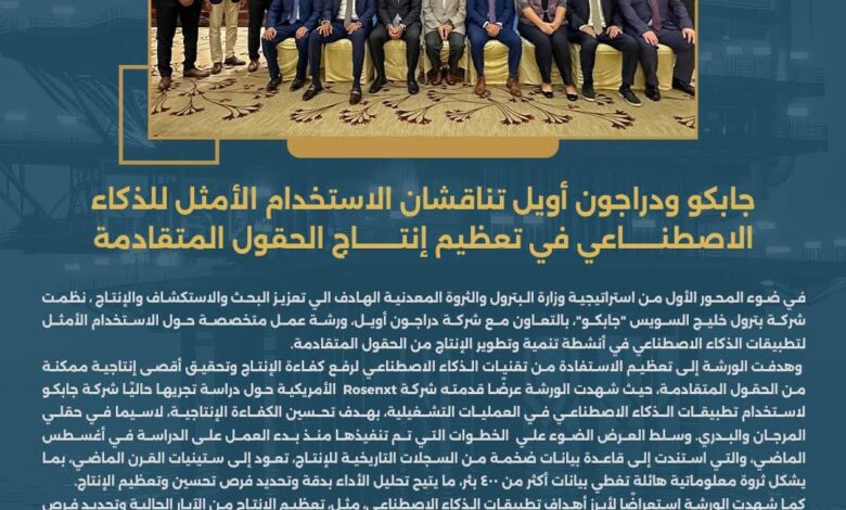 جابكو ودراجون أويل تناقشان الاستخدام الأمثل للذكاء الاصطناعي في تعظيم إنتاج الحقول المتقادمة