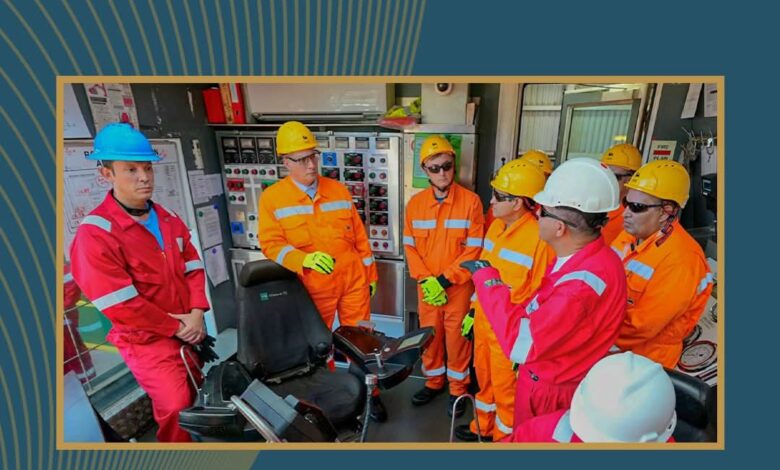 والتقي الوزير مع فريق العمل المسؤول عن إدارة العمليات علي الحفار ، مثمنًا الجهود المبذولة لرفع كفاءة التشغيل.