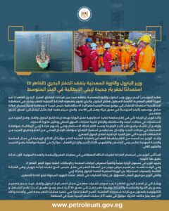 وزير البترول والثروة المعدنية يتفقد الحفار البحري (القاهر-2) استعدادًا لحفر بئر جديدة لإيني الإيطالية في البحر المتوسط