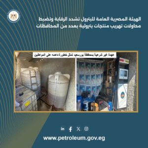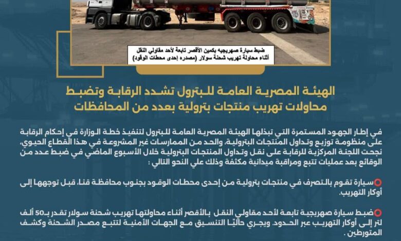 الهيئة المصرية العامة للبترول تشدد الرقابة وتضبط محاولات تهريب منتجات بترولية بعدد من المحافظات