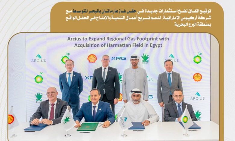 توقيع اتفاق لضخ استثمارات جديدة في حقل غاز هارماتان بالبحر المتوسط مع شركة أركيوس الإماراتية، لدعم تسريع أعمال التنمية والإنتاج في الحقل الواقع بمنطقة البرج البحرية.