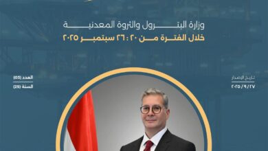 بترول وطاقة  الحصاد الأسبوعي حول ابرز أنشطة وزارة البترول والثروة المعدنيةأصدرت وزارة البترول والثروة المعدنية الحصاد الأسبوعي حول ابرز أنشطة الوزارة خلال الأسبوع المنقضي، وما شهده من اجتماعات ومشاركات لكريم… المزيد