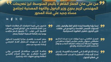 أهم الاخبار  ابرز تصريحات كريم بدوي وزير البترول والثروة المعدنية لبرنامج مساء جديد علي قناة المحورمن على متن الحفار القاهر 2 بالبحر المتوسط: عملنا في قطاع التعدين علي تهيئة بيئة تشريعية ملائمة و تطبيق نظم… المزيد