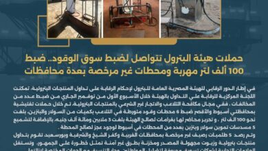 استمرار الحملات الرقابية لهيئة البترول بالمحافظات في إطار الدور الرقابي للهيئة المصرية العامة للبترول، وضمن جهود اللجنة المركزية للرقابة على…