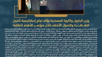 شارك كريم بدوي، وزير البترول والثروة المعدنية، في افتتاح “مؤتمر الأهرام للطاقة” في نسخته التاسعة، والذي يُعقد تحت رعاية رئيس…