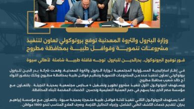 فور توقيع البروتوكول.. بدرالدين للبترول توجه قافلة طبية شاملة لأهالي سيوة في إطار استراتيجية المسؤولية المجتمعية لوزارة البترول والثروة المعدنية،…
