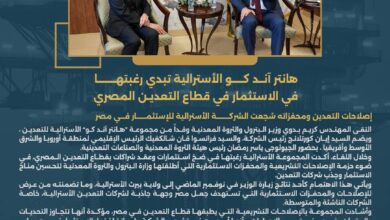إصلاحات التعدين ومحفزاته شجعت الشركة الاسترالية للإستثمار في مصر التقى كريم بدوي وزير البترول والثروة المعدنية وفداً من مجموعة “هانتر…